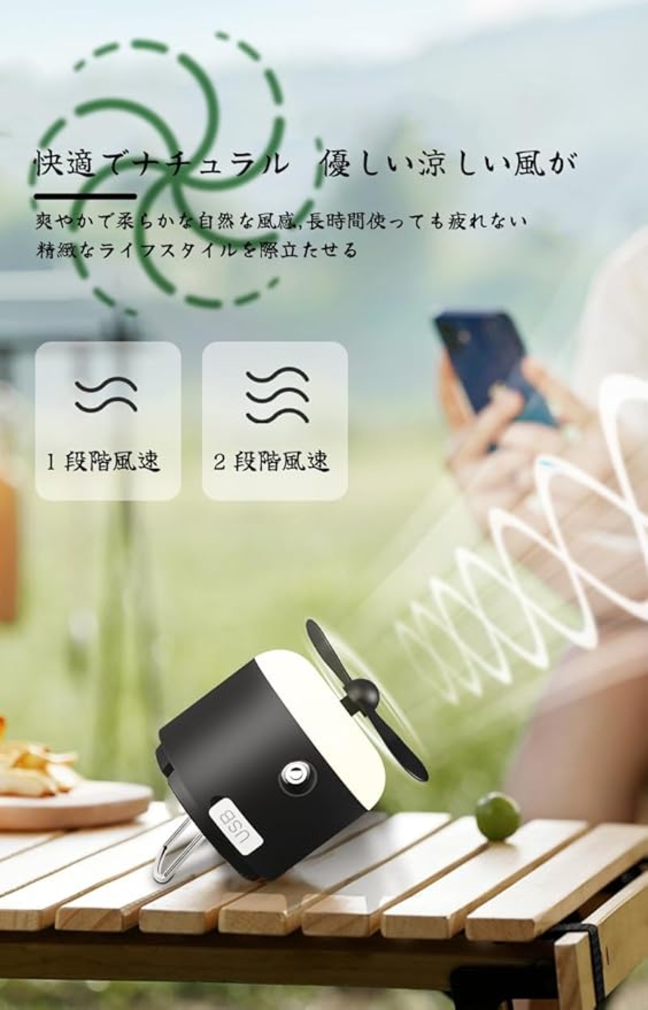 【1200mAhバッテリー&ファンライト】 キャンプセット向けに開発された吊り下げ式ライトは、1200mAh大容量バッテリーが400ルーメンの高輝度照明を実現し、夜間テント内やアウトドアキッチンをまるで昼間のように照らします。ファン上部のフックでテント天井に吊るすのはもちろん、底面のマグネット吸着機能を活用すればキャンピングカーのボディやポール設置も瞬時に完了。扇風機付きデザインが風通しを確保しながら、焚き火周りの作業灯から寝転び読書用の間接照明まで、多様なキャンプシーンに柔軟に対応します。
