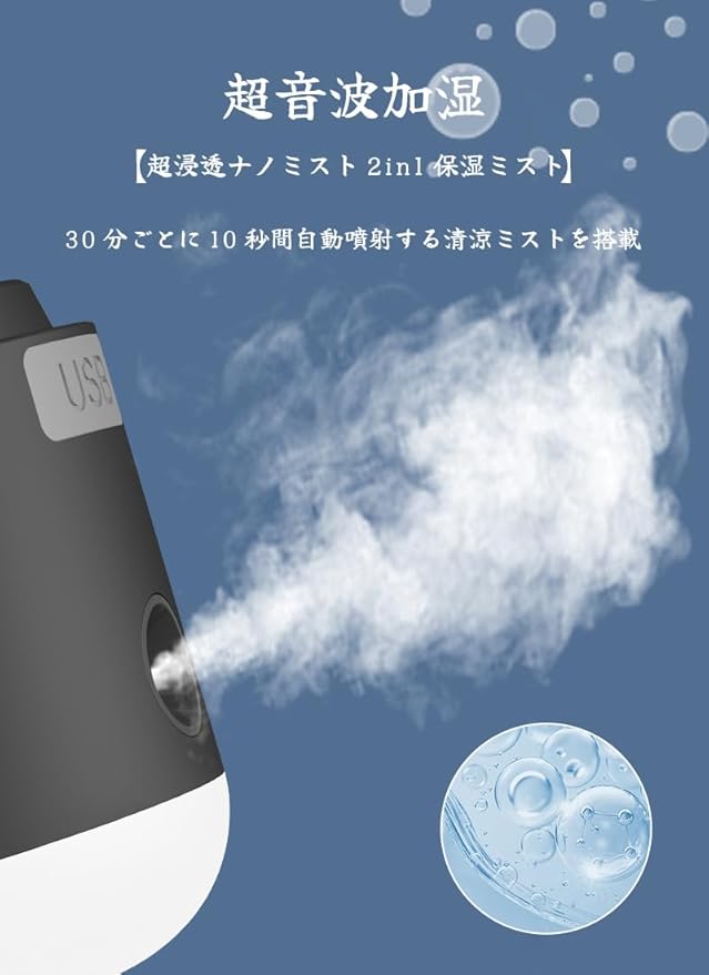 ミスト設計&クールサマー】 キャンプギアに最適な超音波ミスト機能搭載製品は、水タンクを装着するだけで30分間隔で10秒間の自動噴霧を実行。微細な水粒子が炎天下のテント周辺やBBQスペースに均一に拡散し、体感温度を最大3℃低下させるクーリング効果を発揮。アウトドアでの乾燥対策とひんやり感持続を両立させ、真夏のキャンプやフェスでの暑さ対策に革新をもたらします。タイマー設定不要のスマート噴霧システムで、電源を入れたままテントを離れても安心して利用可能。