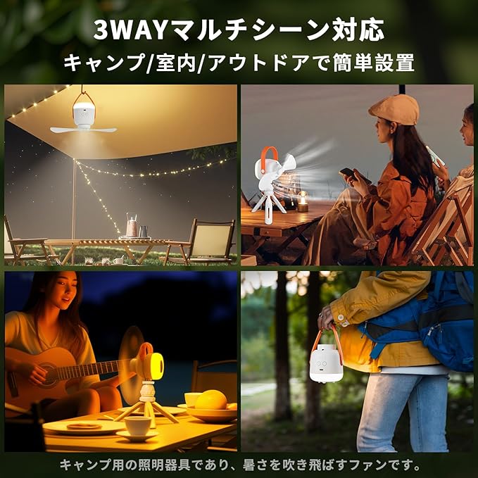 LEDランタン 扇風機 付き [卓上・吊り下げ・スタンド式・壁掛け] 8000mAH大容量バッテリー内蔵 キャンプランタン 光色・輝度記憶搭載 4色切替 無段階調光 キャンプ ライト リモコン操作 アウトドア バーベキュー 登山 夜釣り 防災 停電 緊急 非常用 | KAZESHOP
