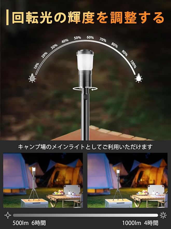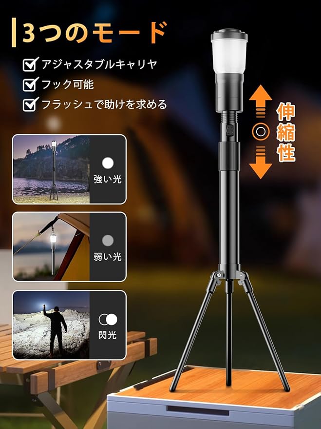 LEDランタン キャンプライト・懐中電灯機能・Type-C充電式・3つの照明モード・多機能・アルミ合金製三脚・超高輝度LEDビーズ・IPX7防水防塵 キャンプ/緊急照明/アウトドア活動/地震/停電/夜釣り/ハイキング/防災用 日本語取扱説明書 | KAZESHOP