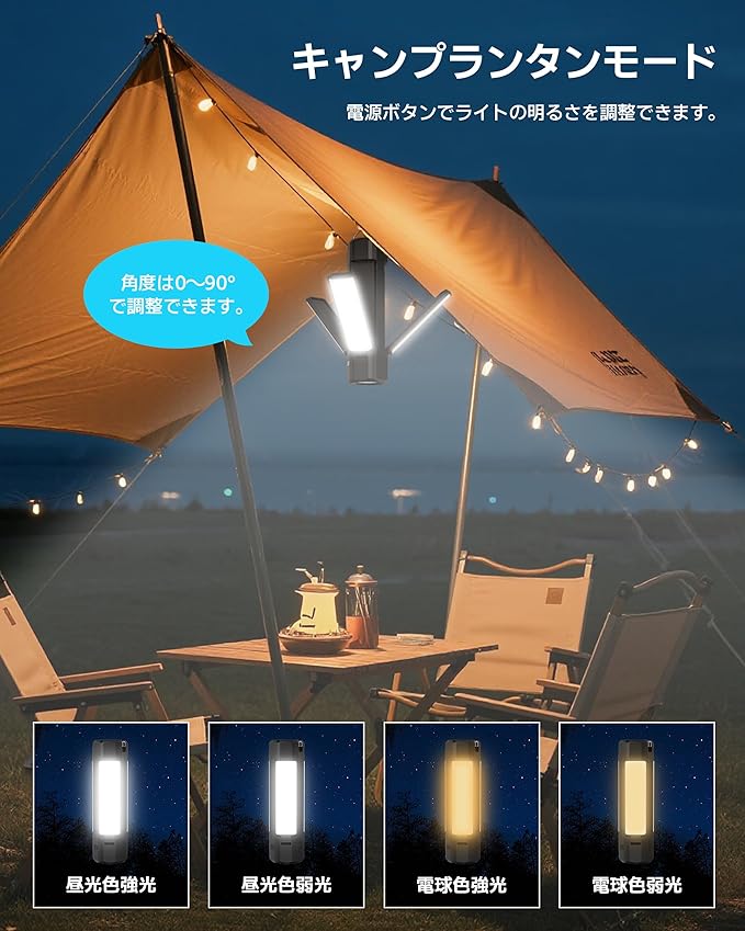 【多機能・1台3役・360 高輝度 】当社の LEDランタン は、ランタンモード、懐中電灯モード、緊急SOSモードの3つの機能を備え、一台で多様なシチュエーションに対応できる ランタン となり、昼白色/電球色の高輝度で、キャンプや夜釣り、登山などのアウトドア活動はもちろん、非常時のSOSサインとしても役立ちます。全方位を照らす360 照明で、どこにいても明るい環境を確保する led ランタン です。