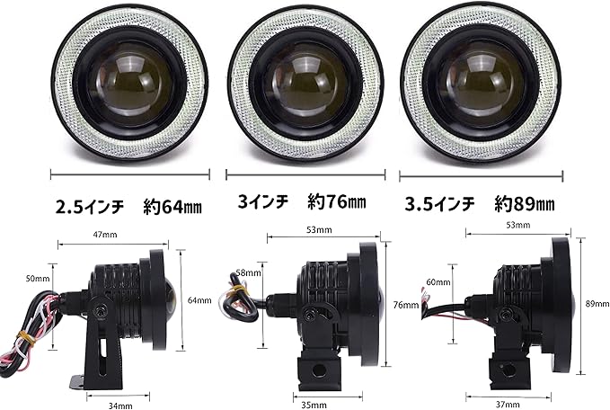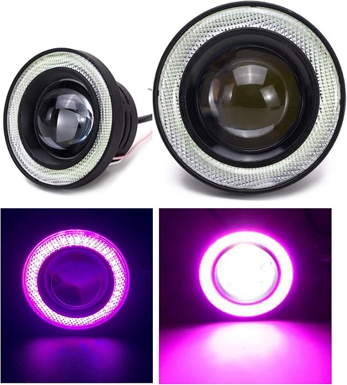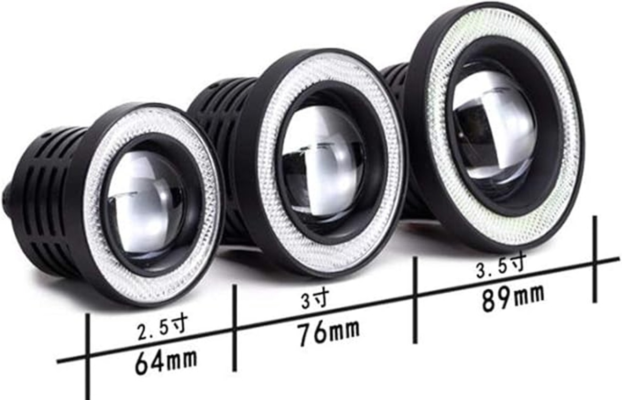 ユニークで広範囲に光を照らすスポットライトとその周りを囲むイカリング設計。フォグランプと同時にデイライト機能とウインカーとして利用可能。汎用品で様々な車種に適合し、トラックやオートバイ(バイク)に使用可能。