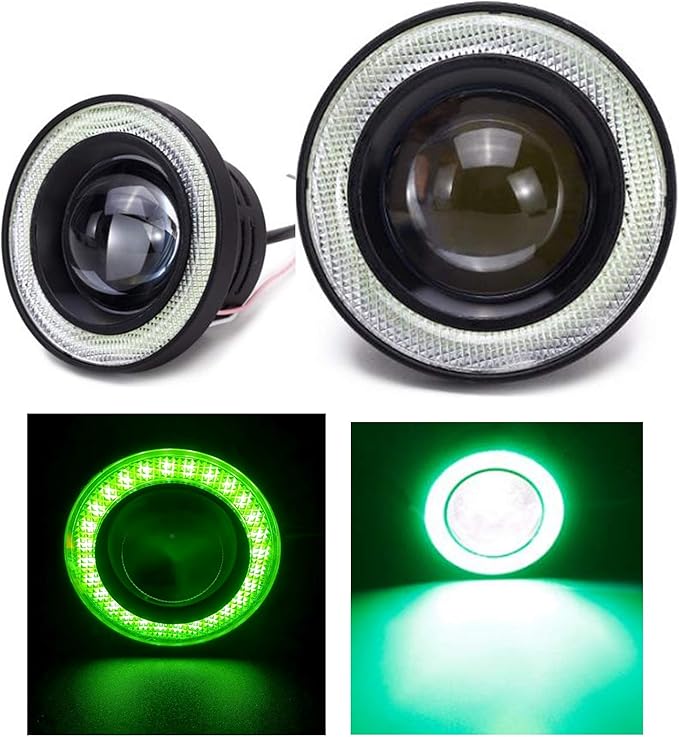 ユニークで広範囲に光を照らすスポットライトとその周りを囲むイカリング設計。フォグランプと同時にデイライト機能とウインカーとして利用可能。汎用品で様々な車種に適合し、トラックやオートバイ(バイク)に使用可能。