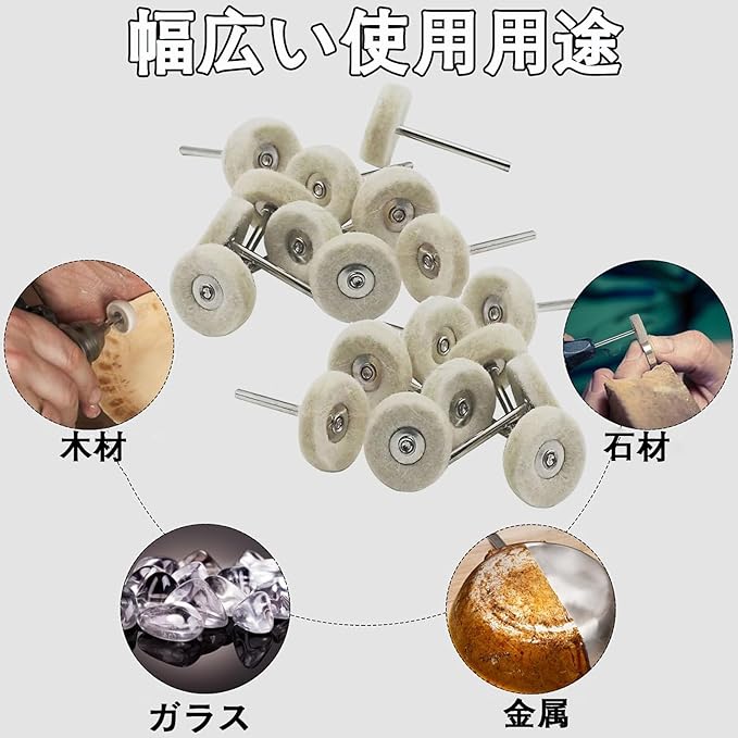 フェルト生地:高品質なリューター バフは優れた耐久性と性能を提供します、早く磨けました。使った後は水洗いして何回も使用できる。