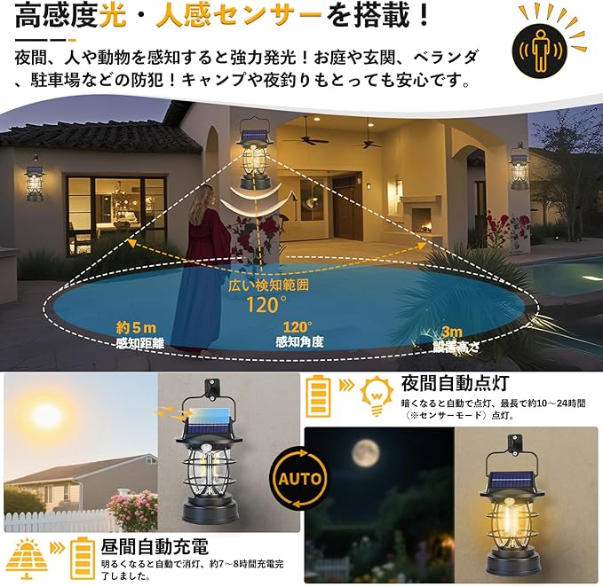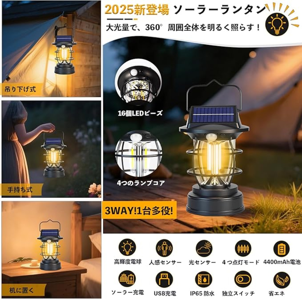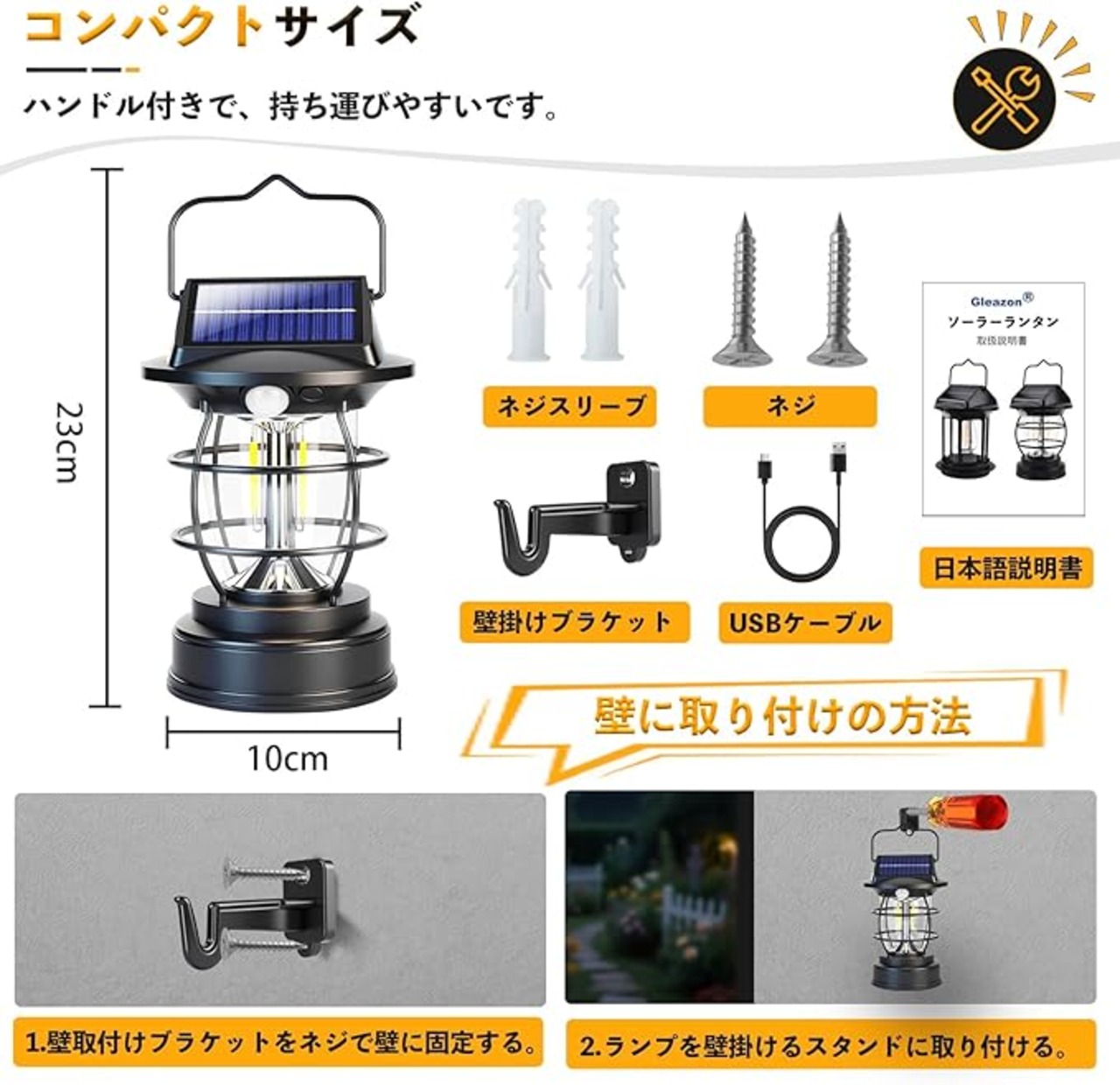 Gleazon LEDランタン ソーラー&USB充電式 キャンプライト 超高輝度 電球色 ソーラーセンサーライト 屋外【光・人感センサー& 4つ知能モード】4400mAh大容量 IP65防水 和風 らんたん 吊り下げ・手持ち・壁掛け・置く 4Way ウォールランプ キャンプ アウトドア 夜釣り 庭 玄関 車中泊 停電 非常用 防犯対応 | KAZESHOP