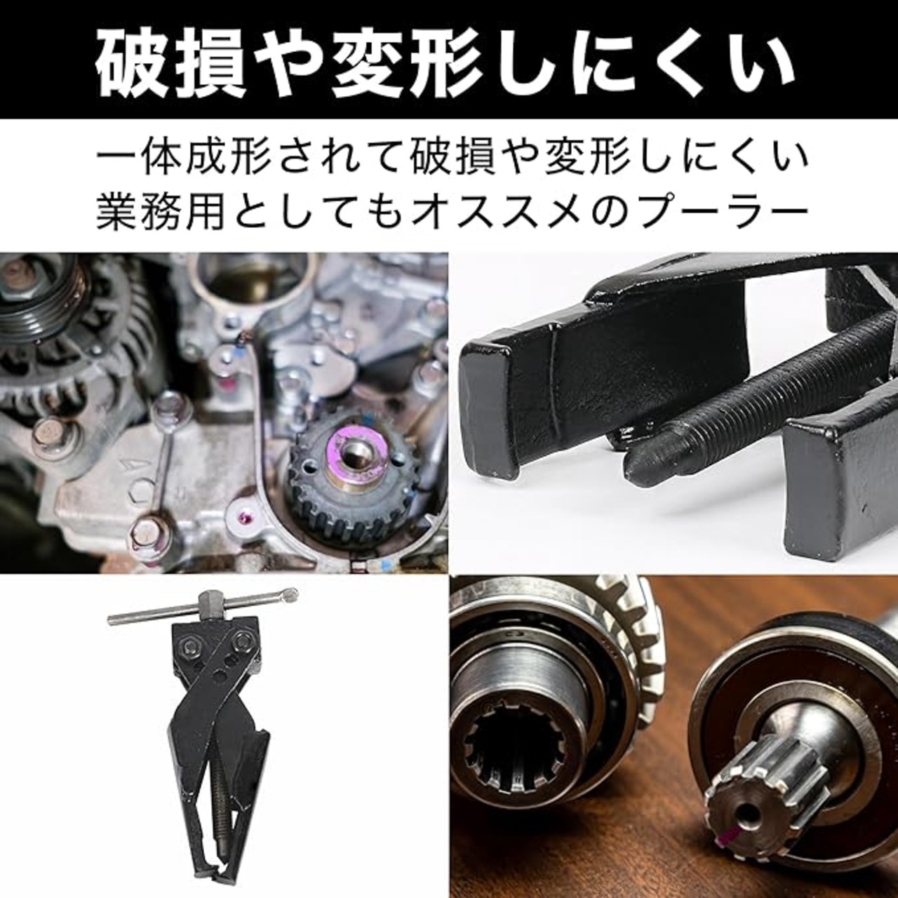 一体成形されていて変形しにくい:一体成形されているベアリングギアプーラーですので、破損や変形しにくいです。業務用のベアリングギアプーラーとして導入したい場合にも、オススメのプーラーとなっております。