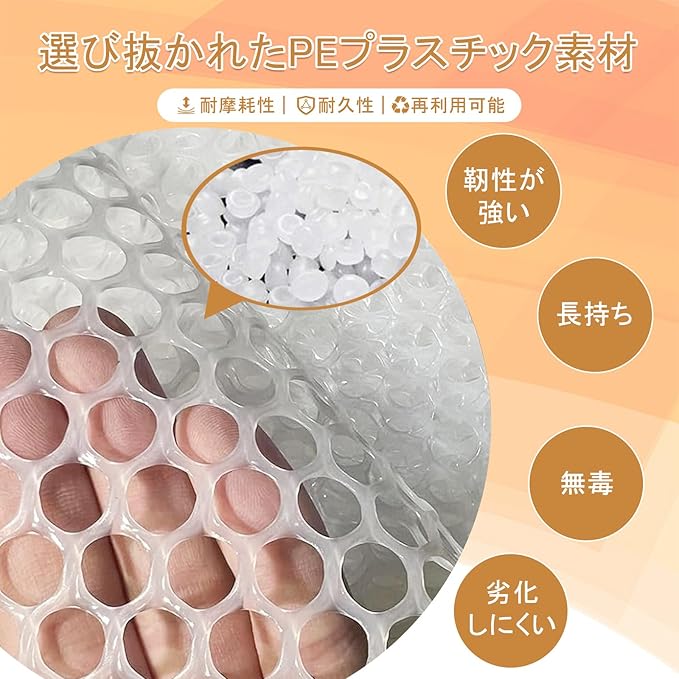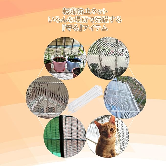 【耐久性の防護ネット】 品質良いPEプラスチックで作られた保護ネット、日光に強く、耐久性・耐摩耗性・腐食防止に優れて、長時間使用しても色あせや剥がれがありません。高品質の丈夫な織物、引っ張り防止、引き裂き防止を使用して、手を傷つけにくい、取り付けやすいなどの長所がございます。