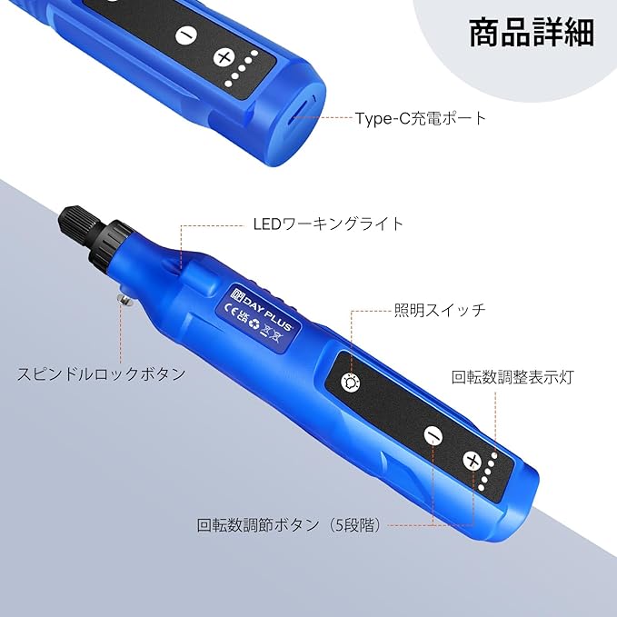 DayPlus ミニルーター 充電式 リューター 5段変速 最高18000rpm USB充電 照明ライト付き 80アクセサリ付き多機能ツール 小型 軽量 DIY工具セット 研磨/彫刻/切削/穴あけ/汚れ落とし/錆落とし/切断/つや出し 日本語取扱い説明書 | KAZESHOP
