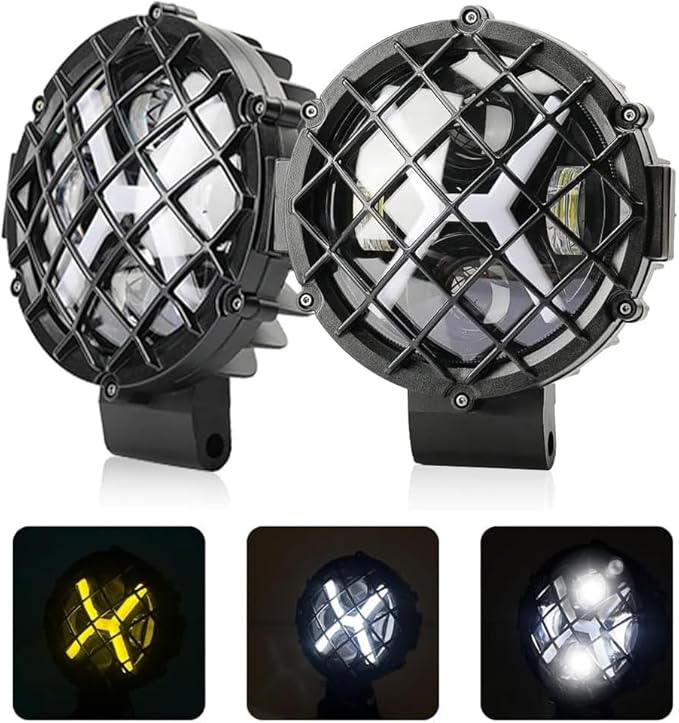 CLOWICSR 7インチ LEDワークライト ヘッドランプ フォグランプ 作業灯 12V/24V 丸形 ランプカバー保護があり スポットライト X形のイカリングが付き 車外灯 高輝度 防水 防塵 耐衝撃 バイク/機械/自動車/トラック汎用 2個セット | KAZESHOP