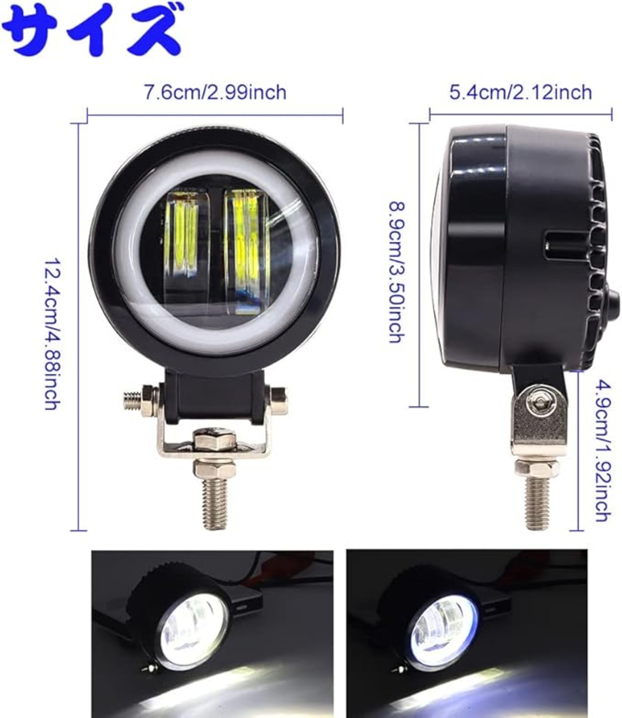 Biqing 20W バイクフォグランプ イカリング付き LED作業灯 ワークライト 12V/24V 狭角 スポットビーム フォークリフト オードバイ用 バイク補助灯 丸形 1個セット+スイッチ (ホワイト+ホワイト) | KAZESHOP