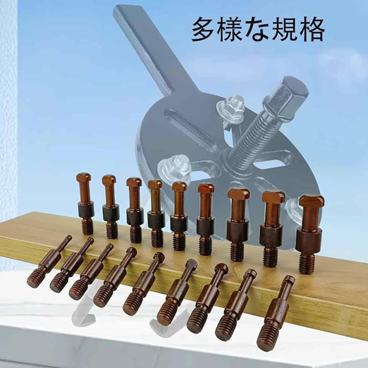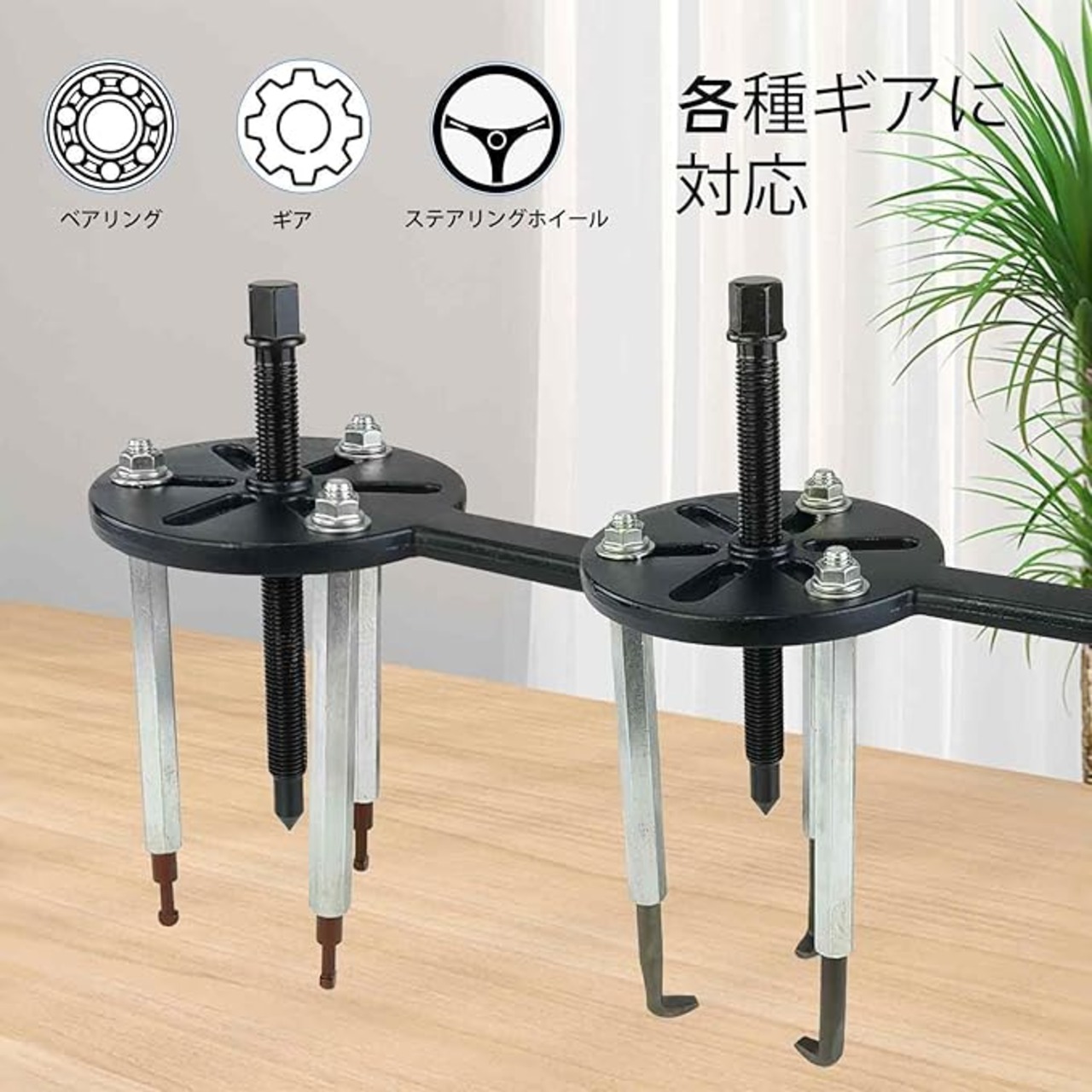 多様なベアリングサイズに対応-6005~6310モデルなど、幅広いベアリングやギア、圧入部品の脱着に最適。自動車整備や機械メンテナンスなど、様々な現場で活躍します。