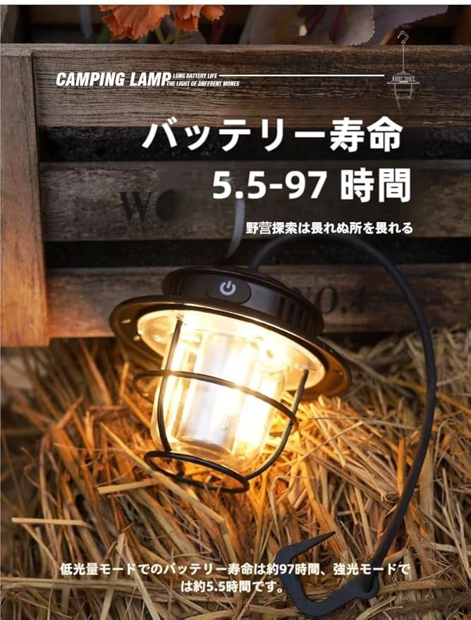 【日本企業】 VCYCTO LED ランタン キャンプ ライト 1200mAh レトロLEDキャンプライト 充電式 LEDランタン キャンプ ランタン 吊り下げ キャンプライト テントライト 防災 携帯電灯 高輝度 IPX4防水 4つの照明モード(1300-6500K) 無段階調光 携帯フック付き サスペンション付き 小型 キャンプ用品 軽量 アウトドア 登山 夜釣り テント ハイキング 停電 | KAZESHOP