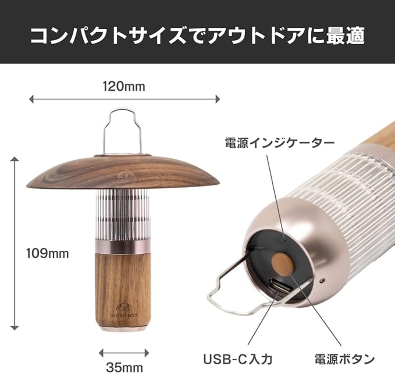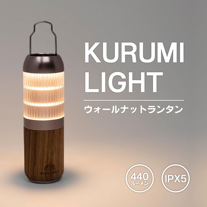 【神戸発ブランド】SheepNot KURUMI LIGHT ウォールナット 2WAY LEDランタン USB-C充電 400ルーメン IPX5防水 シェード付き (ランタンのみ) | KAZESHOP