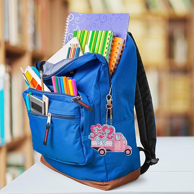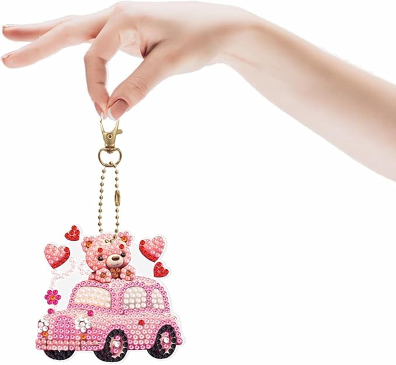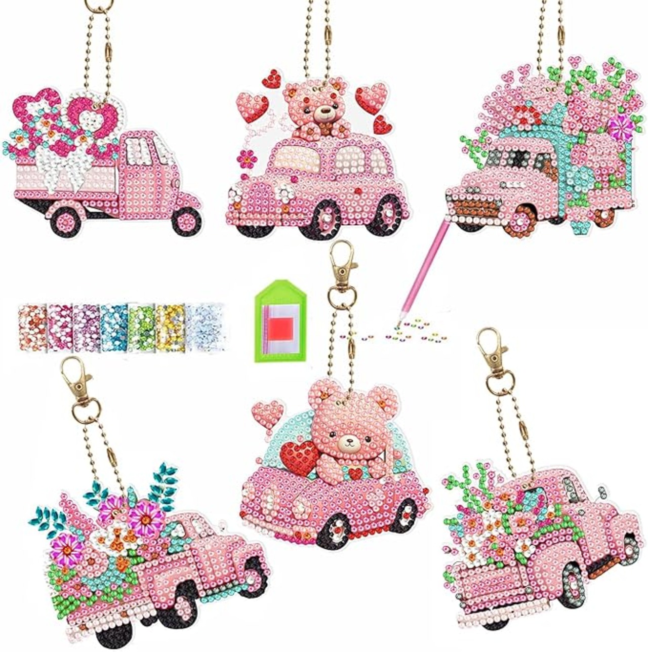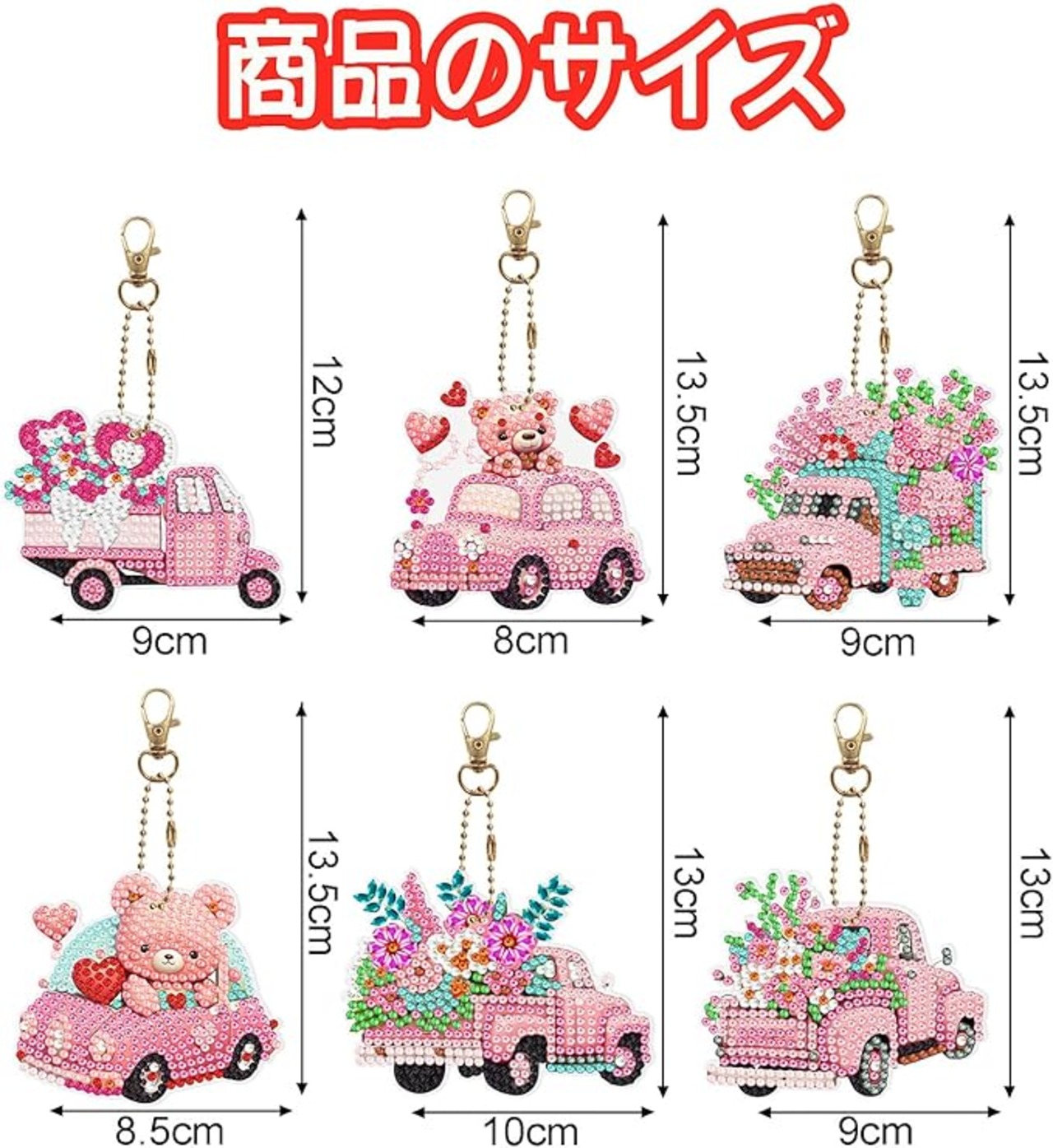 [shuangtouling] ダイヤモンドアートキーホルダーキット6個、パックDIYダイヤモンドペインティングキーホルダーペンダントダイヤモンドアートペインティングキーチェーンクリスマス、子供の日、誕生日ギフト (車) | KAZESHOP