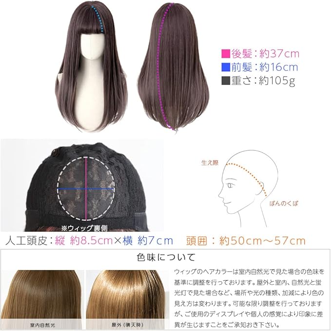 仕様:人工頭皮あり:アレンジ自在つむじ 前髪分け目自由 金属不使用 シャンプー可能 ドライヤー、コテ、アイロン等で好みの髪型に整えることができます。「耐熱温度最大180度」