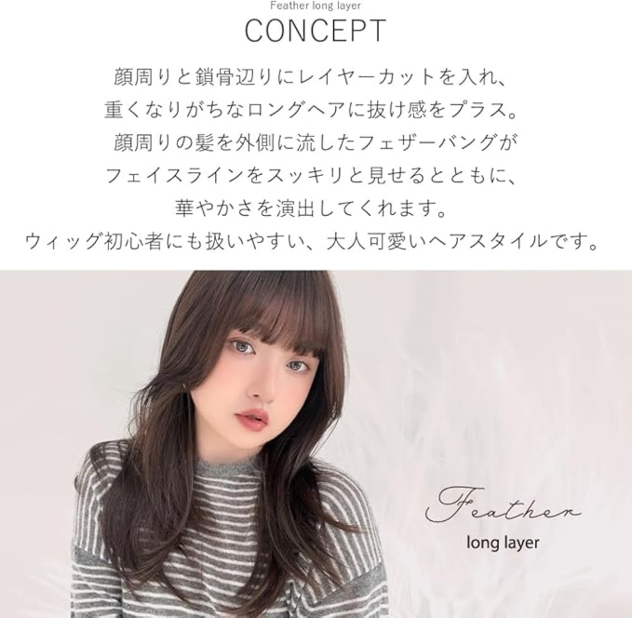 重くなりすぎず、軽やかな印象になれるレイヤー入りのロングヘア。毛先にかけてゆるくかかった大きめのワンカールと、顔周りや鎖骨ラインにほどこしたレイヤーカットで、抜け感たっぷり。いつの時代でも定番人気の「前髪ありロング」を、トレンド感のあるスタイルに落とし込みました。顔周りと鎖骨辺りに入ったレイヤーが、正面から見た時に前上がりのラインを作ってくれる為、毛先のワンカールが重く固まらず軽やかな印象を与えてくれると共に、毛先の長さを揃えない事でカールに段差ができ、重い印象にならず、ふわっと感が出やすくなります。