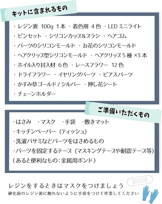 付属コンポーネント 作家のためのレジン100g, シリコンモールド, キーホルダー金具, 封入パーツ, 36WコンパクトLEDライト, 着色剤, シェイカーモールド, お花スパンコール, パール, 星と月パーツ, ピンセット, ギフト用ラッピング袋作家のためのレジン100g, シリコンモールド, キーホルダー金具, 封入パーツ, 36… 表示を増やす