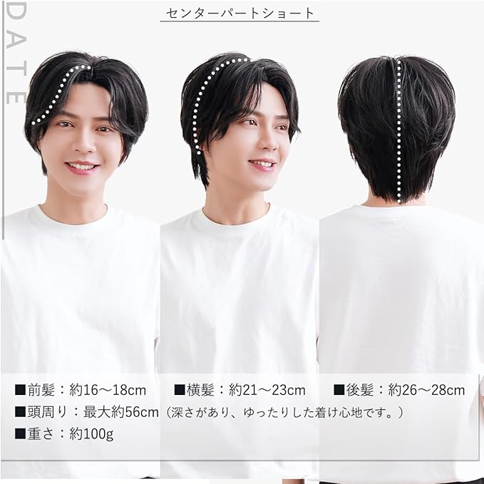 【頭囲】約56cm 【ウィッグの長さ】Front:約16〜18cm Side:約21〜23cm Back:約26〜28cm 【重さ】約100g