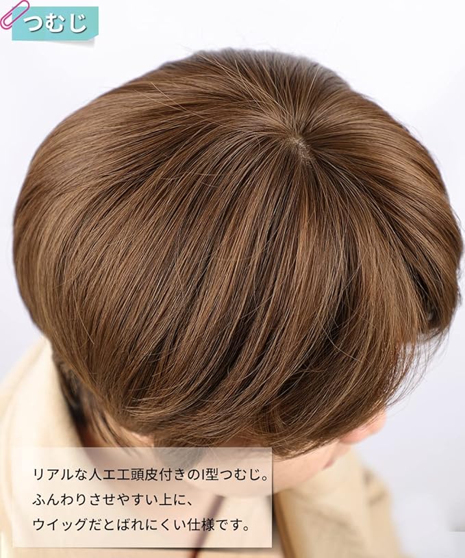 ①つむじ:高品質の人工皮膚、自然な分け目 ②カラー: 明るい赤茶 ③重さ:約90g
