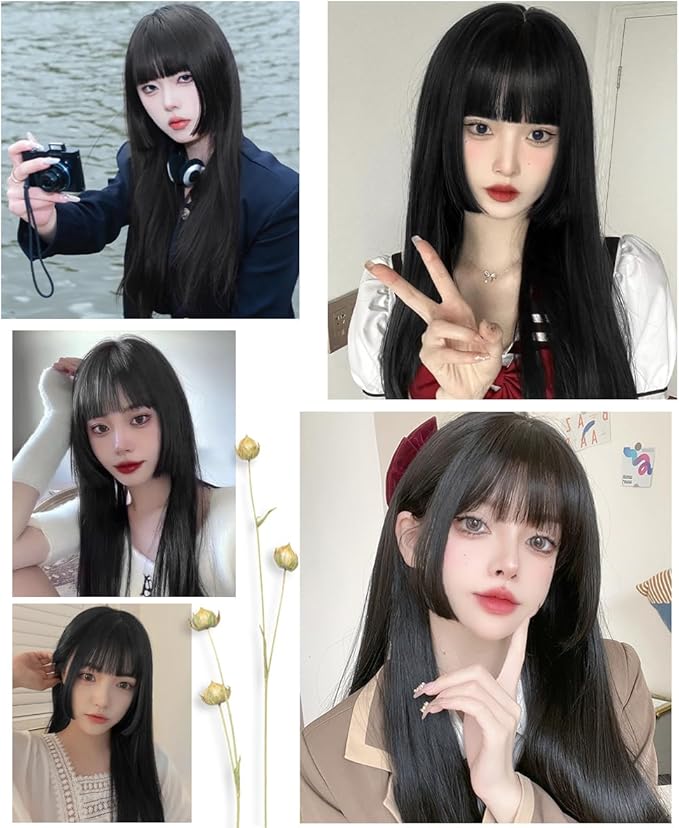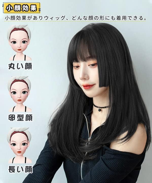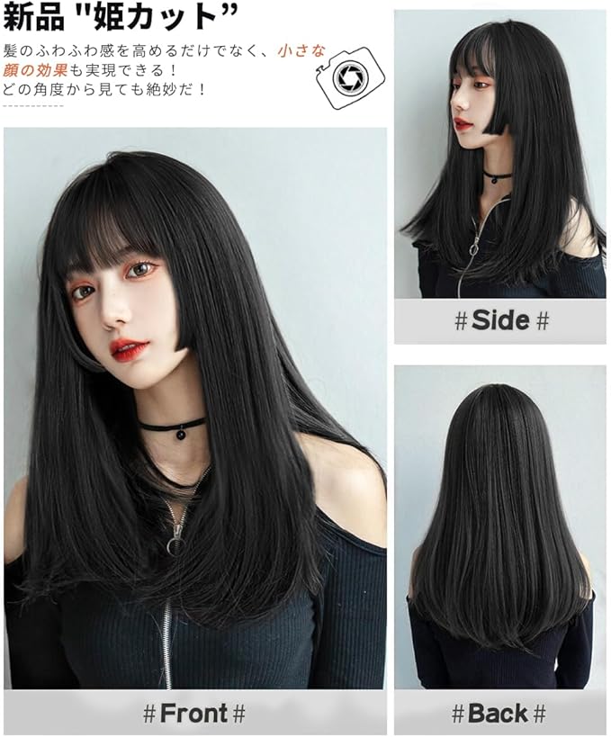 AISI QUEENSウィッグ セミロング 姫カット 黒 ロング ストレート フルウィッグ ミディアム 黒髪 姫髪 女装 レディース 可愛い 自然 小顔ウィッグ 原宿 ロリータ 耐熱 女性 ネット付き | KAZESHOP