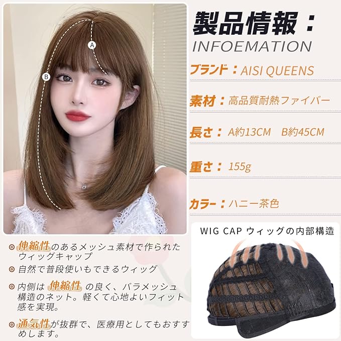 AISIQUEENSウィッグ セミロング ミディアム ボブ ストレート レイヤーカット フルウィッグ かつら 女性 女装用 レディースフルウィッグ wig ぱっつん前髪 可愛い 小顔 人気 軽い ふんわり 爽やか 日常用 普段使い 仮装 ナチュラル 耐熱 ファッション おしゃれ ネット/櫛付き | KAZESHOP