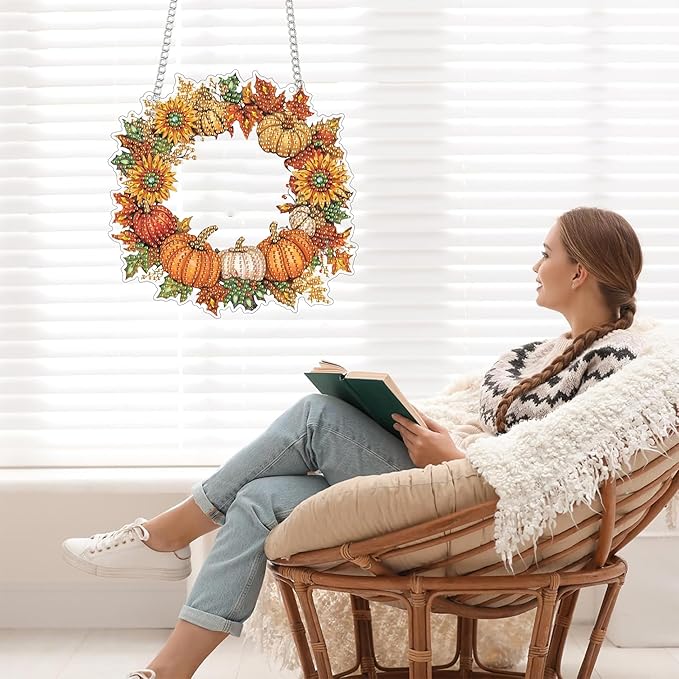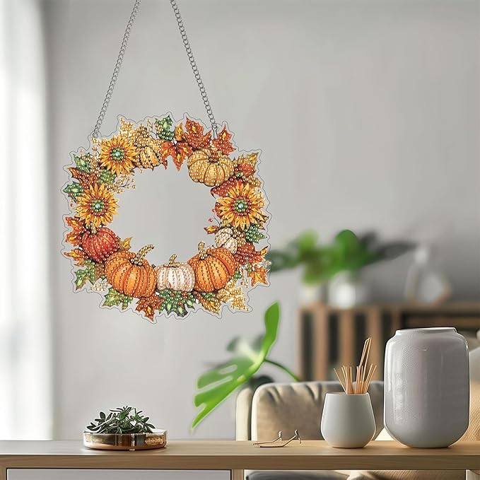 Bimkole ダイヤモンドアート ハロウィン ハンギングキット - 大人のための5Dダイヤモンドアートキット、DIY カボチャ リスタルアートハンギングサイン、アクリルクリスタルアート吊り下げオーナメント - 壁掛け用、家庭・庭・玄関装飾用 20x20 cm | KAZESHOP