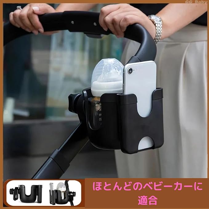 【両手を解放】この製品は、ドリンクホルダーとスマホボックスます。装着後、子どもを連れて外出するときにスマホを置く場所がなくなったります。赤ちゃんにミルクを飲ませるときはドリンクホルダーから哺乳瓶を取り出し、また赤ちゃんのお世話をするときはスマホホルダーにスマホを簡単に入れ、ママの負担が軽減され、快適なお出かけができます。