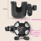 【製品仕様】直径2~4.5cmのハンドルに対応し、カップホルダーには直径8cmまでのボトルを収納できます。環境に優しい高品質のABS樹脂を使用し、軽量ながら耐久性に優れています。本製品の底部に滑り止め設計が付き、飲み物をまっすぐに保持してこぼれを防ぎ、移動中の安定さを確保できます。