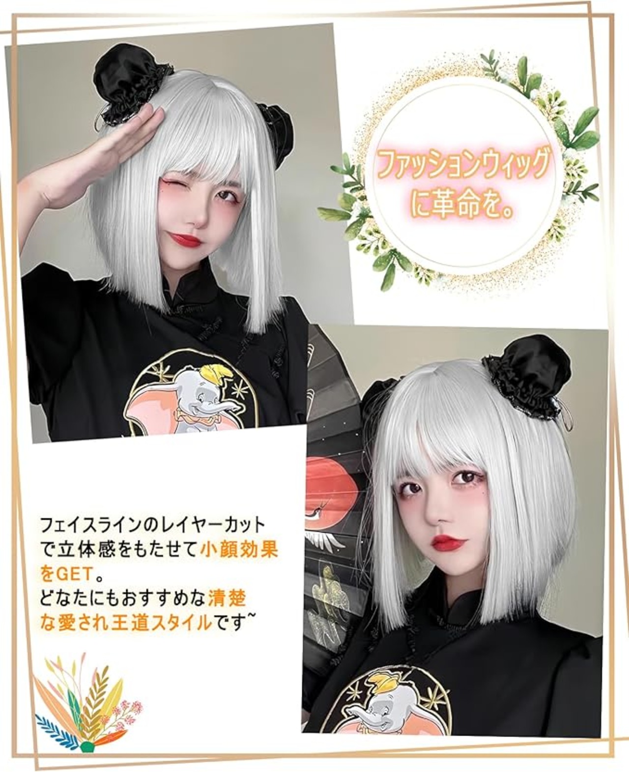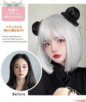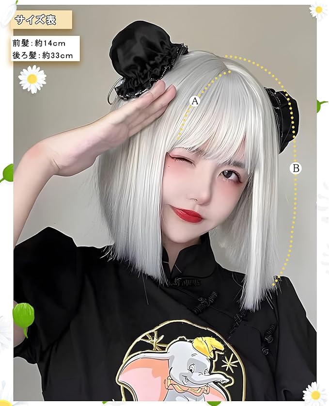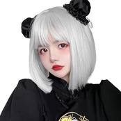 クールでスタイリッシュなシルバーグレーのカラーが特徴です。適度な長さで、顔周りをすっきりと見せ、小顔効果が期待できます。ナチュラルなぱっつん前髪で、どんなファッションにも合わせやすいデザインです。