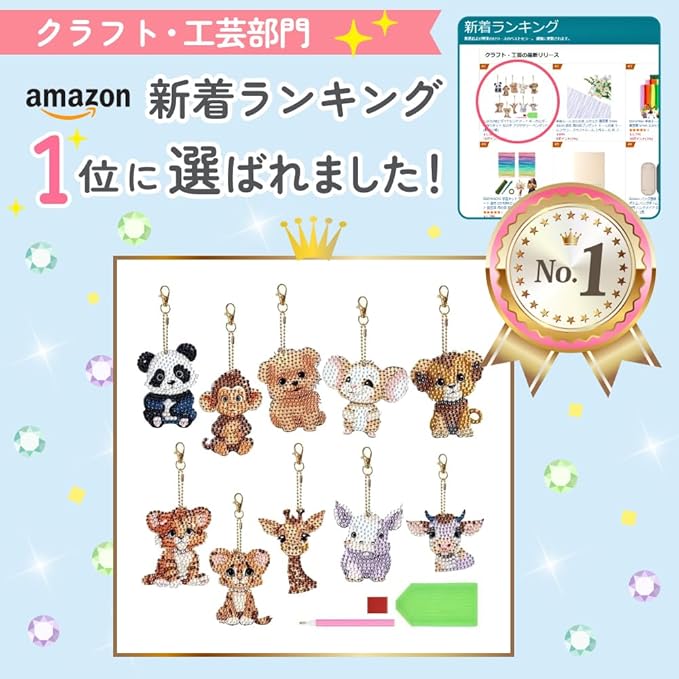 【セット内容】 ・ダイヤモンド ・基板 ・トレー ・ペン ・粘着ペースト ・キーホルダーチェーン、 ダイヤモンドアートに必要なものが一式そろっています