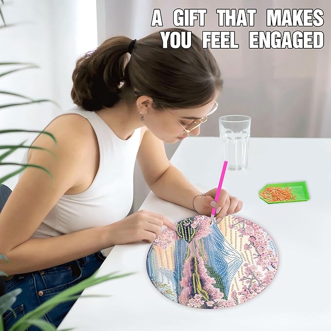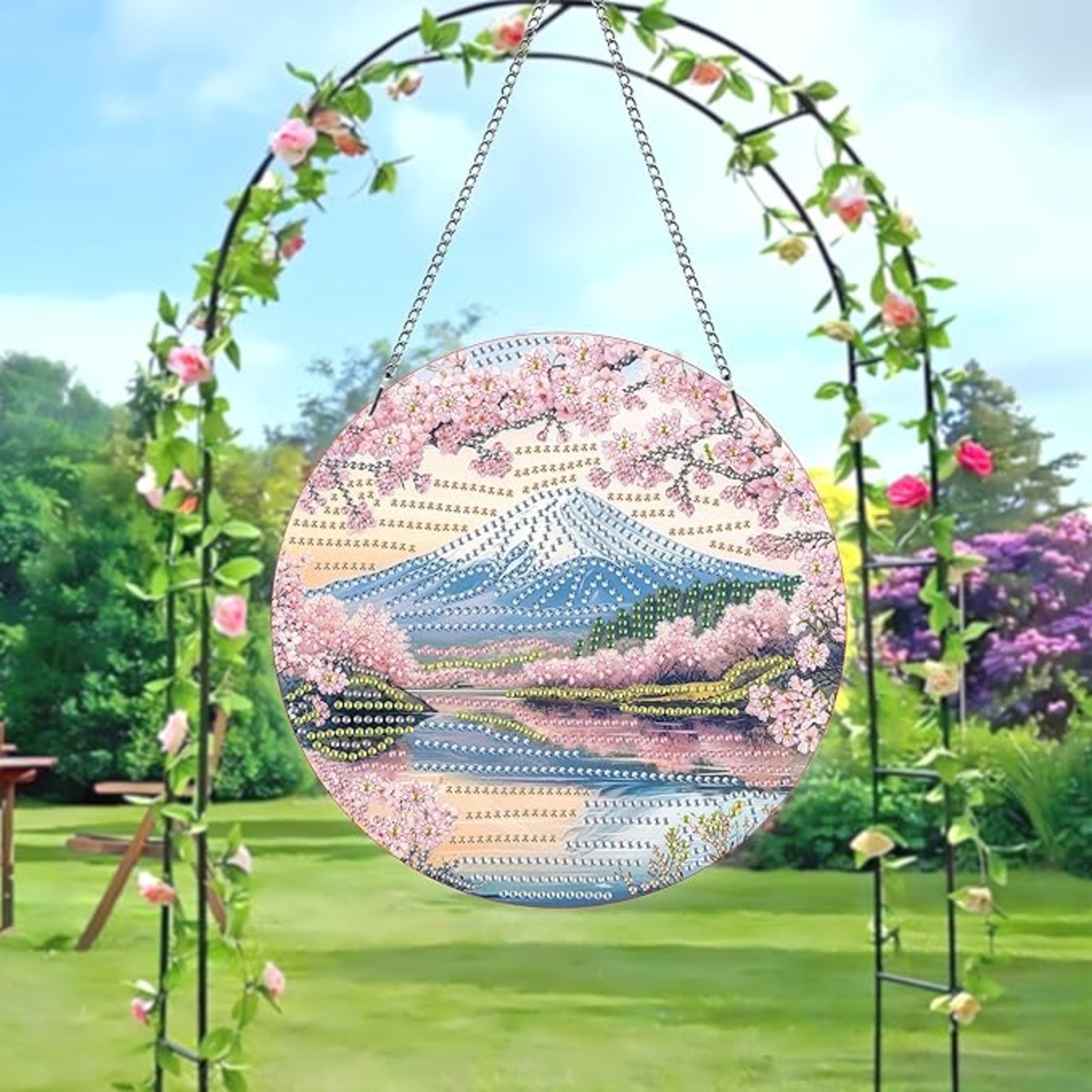 LOMSIOY ダイヤモンドアートペンダント 富士山 簡単DIYビーズアート 初心者向け 桜 贈り物用 ハンギングデコレーション インテリア用 キラキラアート 特殊シェイプ チェーン付き 完成時間短 部屋・ドア・窓用 (20x20 cm) | KAZESHOP
