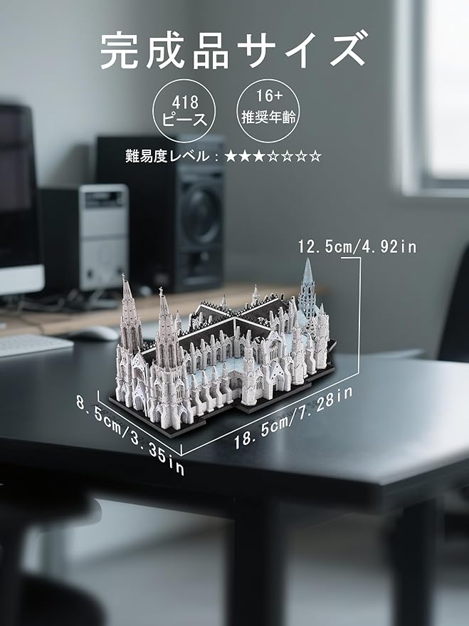 難易度:★★★☆☆☆☆、パーツ数:418、完成品サイズ:L18.5cm W8.5cm H12.5cm