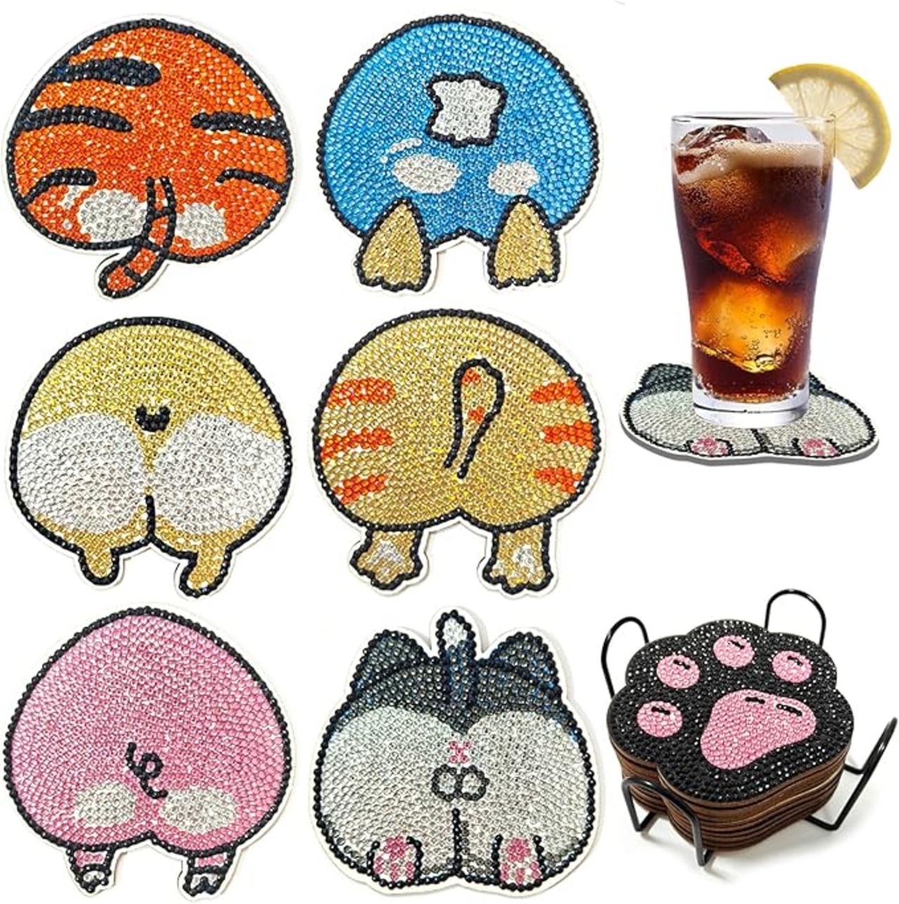 Reofrey ダイヤモンドアートコースター 漫画の動物のかわいいお尻 、6 個ダイヤモンドアート キットコルクコースター、DIY ダイアモンドビーズ 初心者 大人用 ホルダー付き アートクラフト 贈り物 コースター ダイヤモンド ペインティン | KAZESHOP