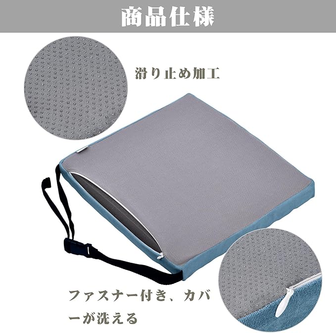 【ベルトと滑り止め付き、2重固定】クッションにワンタッチベルトも付き、学習椅子やダイニングチェアにしっかり固定。また、裏面に滑り止めも加工、立ったり座ったりした際のズレ落ち防止、2重固定なので、お子様は安心してご利用いただけます。