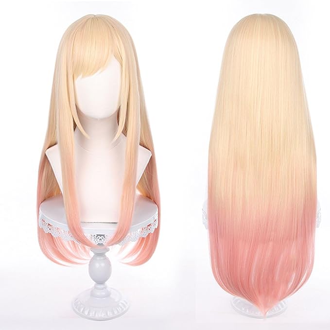 イエロー ピンク ロング ウィッグ コスプレ アニメ キャラクター 変装用 変装 耐熱ウィッグ Cosplay WIG かつら カツラハロウィン クリスマス 文化祭 お祭り 撮影会 学園祭 コスチューム用小物 ウィッグネット付き | KAZESHOP
