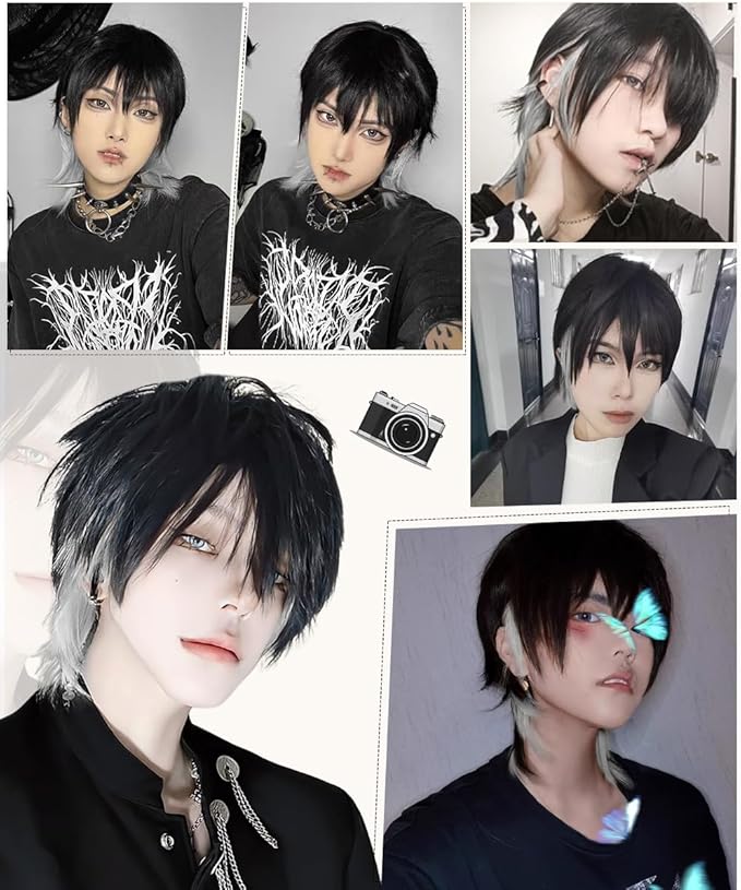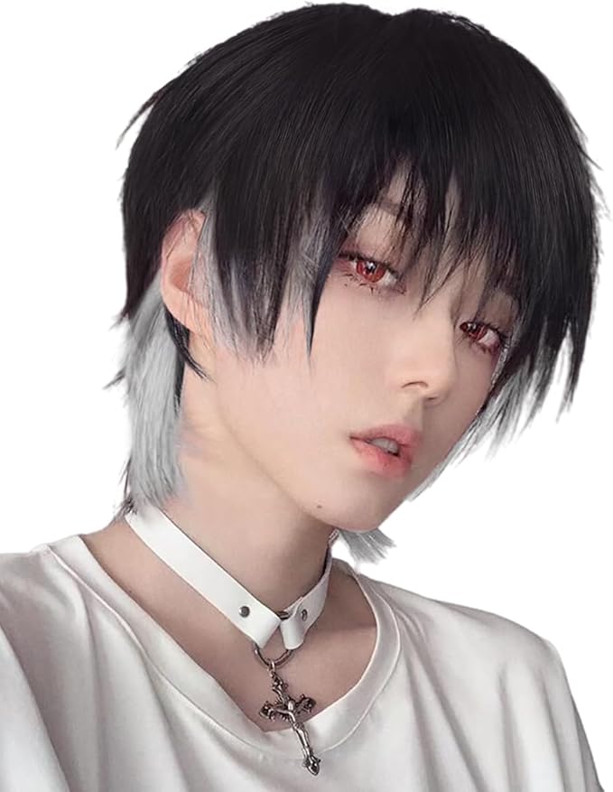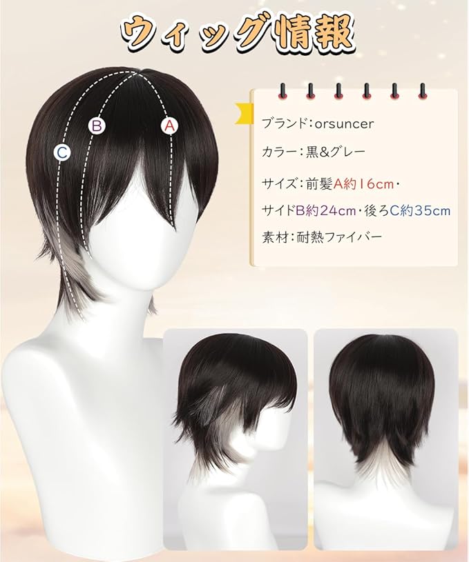 【商品情報】①カラー:黒&グレー。ほどんどの肌色に適合します。 ②タイプ:カジュアルウルフカットショートカツラ。 ③素材:耐熱ファイバー。160 ℃までコテ、アイロン使用OK。 ④裏側:バラメッシュネット。 良好な通気性と弾力のあるバンドを使用、着用し最適! ⑤アジャスター付き:フック式で、頭周りにあわせて段階調節可能(頭周り:約56~58 cm)。