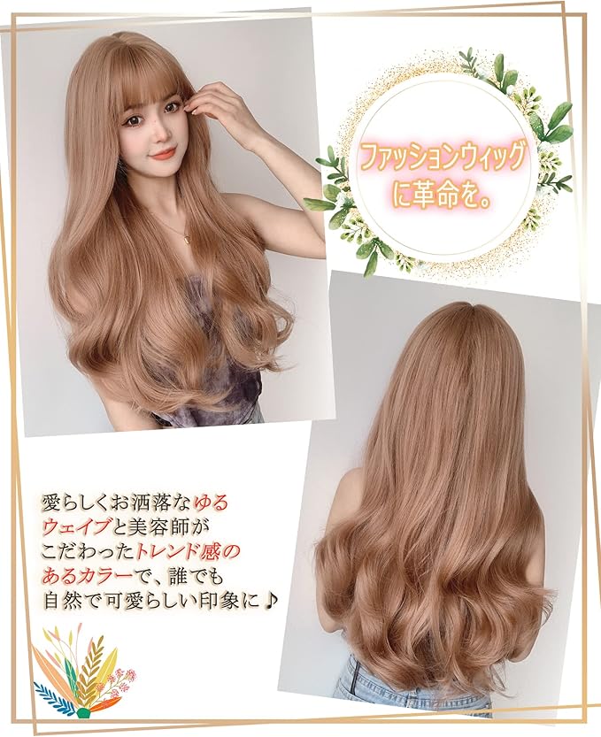 ウィッグ ロング カール ウェーブ かつら フルウィッグ ギャル 自然 セミロング 女性 ぱっつん 小顔 人気 耐熱 wig 原宿系 ファッション ネット/櫛付き シャンパンゴールド | KAZESHOP