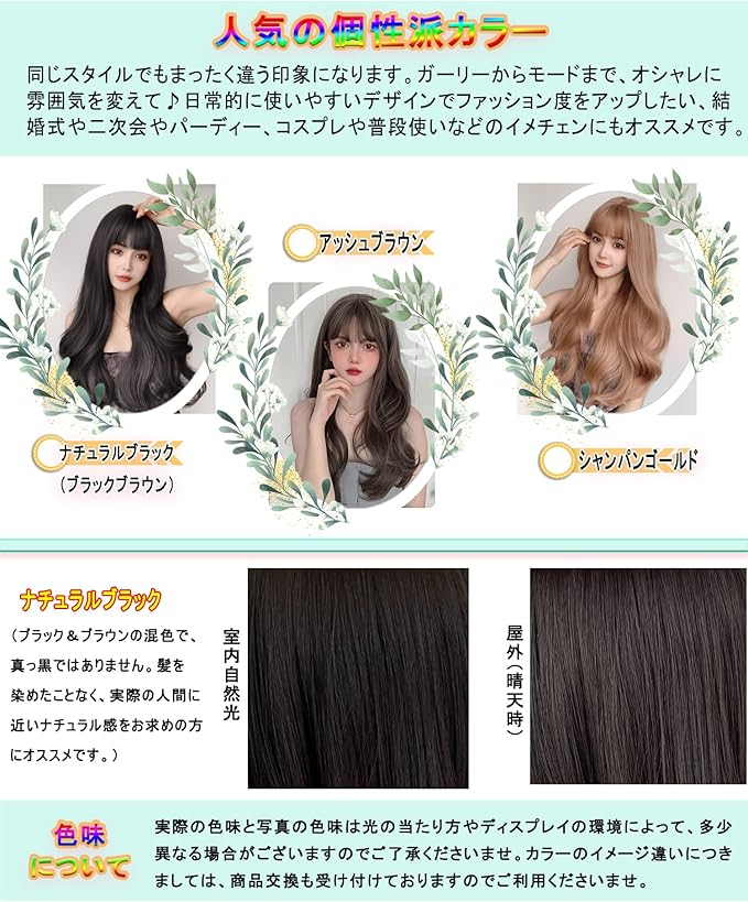 素材構成: 約160度耐熱ファイバー、ドライヤー、コテ、アイロン等で好みの髪型に整えることができます。