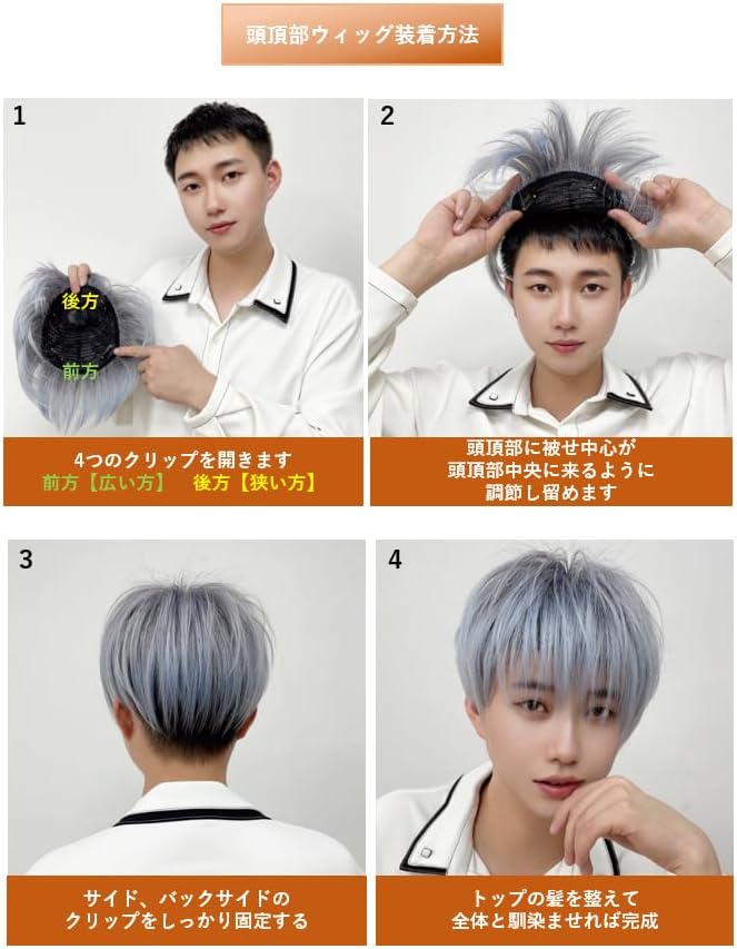 ✅【高品質ウィッグ】自然なツヤや流れにとことんこだわった頭頂部ウィッグ 分け目まで自然な仕上がり