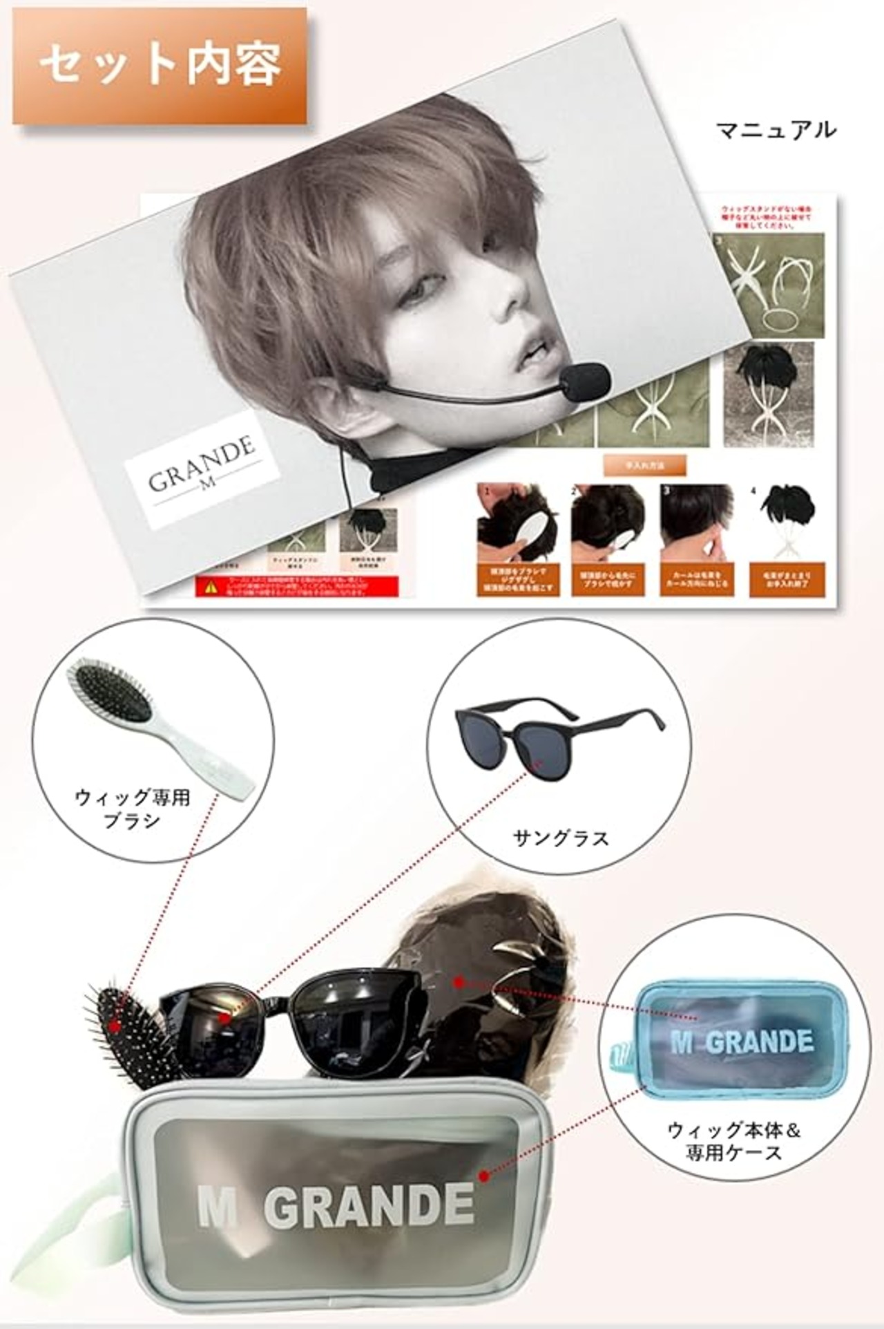 ✅【セット内容】ウィッグ本体 ウィッグ専用ブラシ ウ サングラス 取り扱い説明書 専用ケース