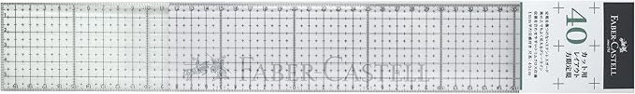 黒の上でもよく見えるグレーラインを採用し、1ミリ平行目盛付き、位置を合わせやすいトリムクロス仕様です。カッターナイフ使用時に定規を傷つけないステンレスガード付きです。