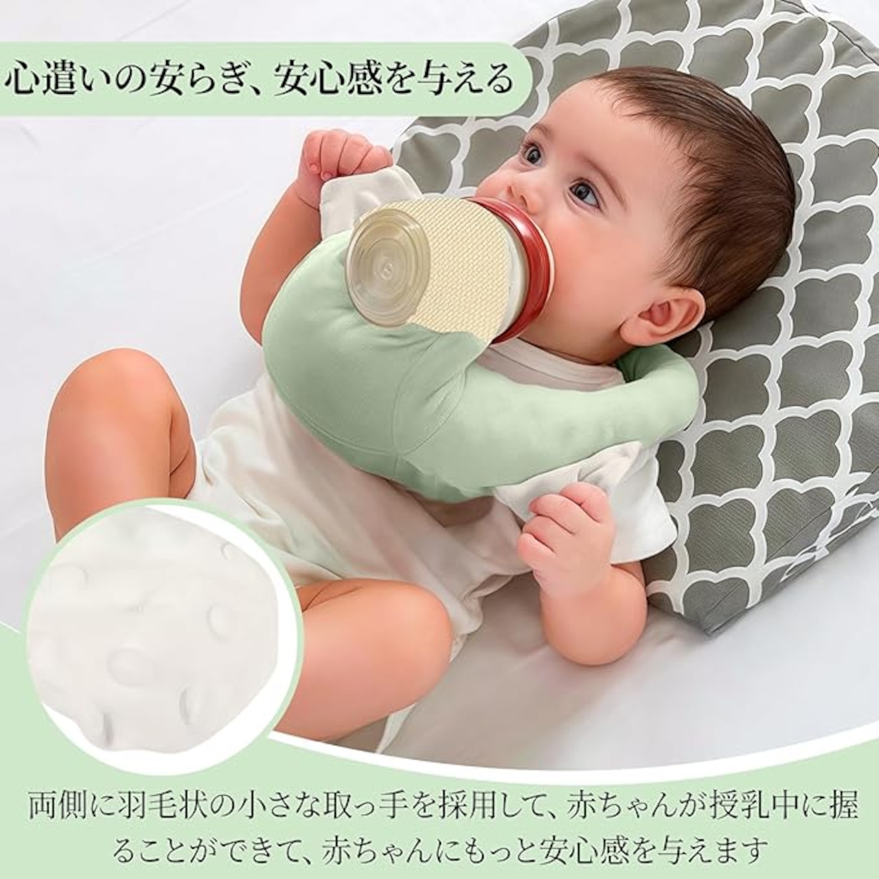 哺乳瓶ホルダー ハンズフリー授乳クッション 授乳枕 1人で飲める授乳クッション 自分で持てる 通気性 洗濯OK サイズ調整可能 赤ちゃんの自己給餌枕 ミルク 双子 多胎 夜間授乳 出産準備 出産祝い ギフト(スモールウィングスグリーン) | KAZESHOP