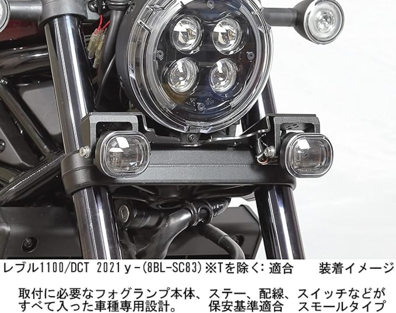 夜間走行時に安心感と視界を広げるだけでなく、被視認性も向上するレブル1100用のLEDフォグランプキットです。