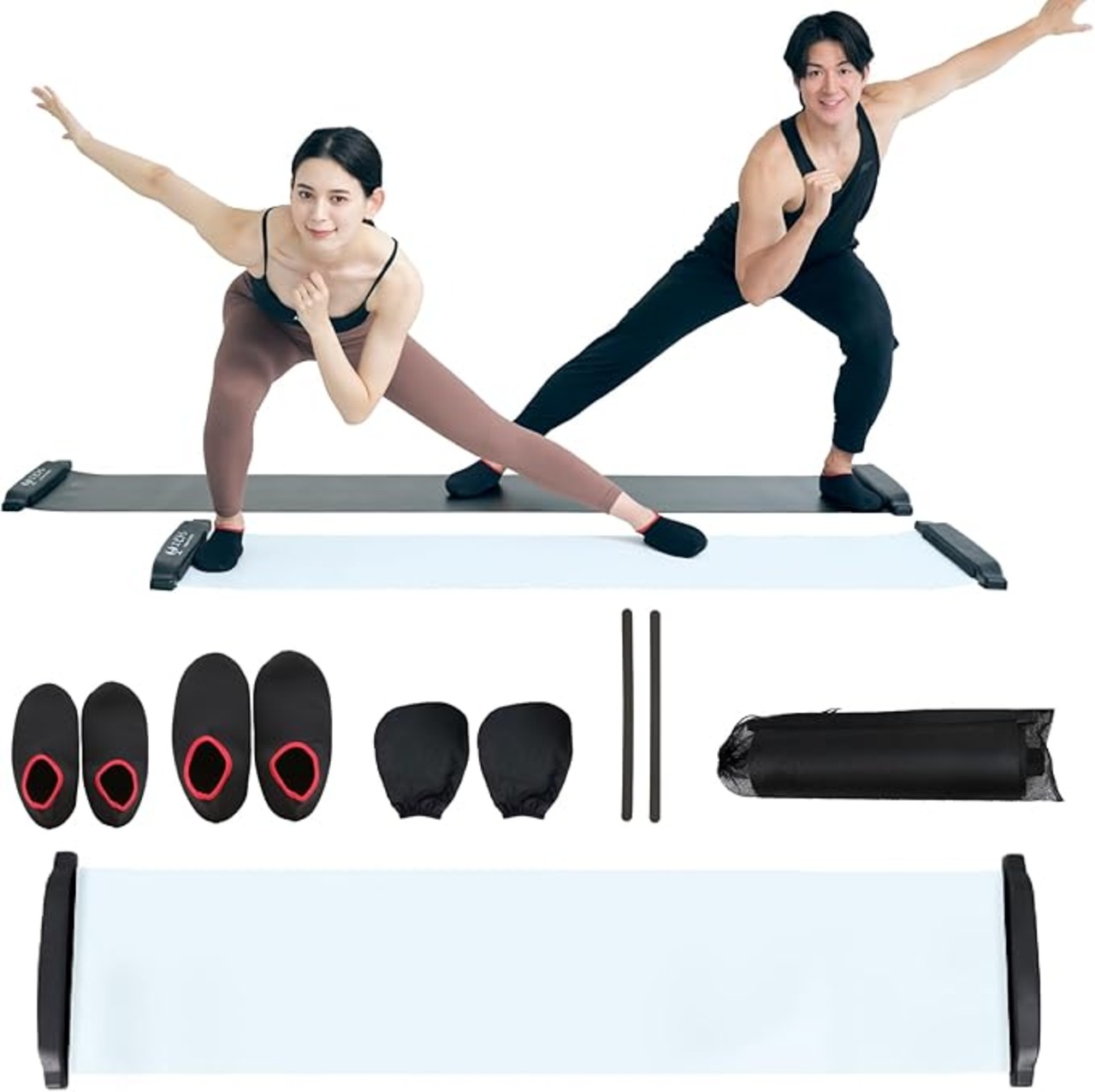 スライド部分は特殊な加工になっておりますので巻き癖による反り返りが生じにくいです。 床にピッタリなじむのでスムーズな滑りをご体感頂けます。 自宅で簡単に体幹トレーニング、有酸素運動など行えます。 付属品にシューズが付いてますのでご家族、ご友人で使用が可能です。 ご使用後はクルっと巻いていただき収納袋に入れるだけで、コンパクト収納が可能ですので邪魔になりません。