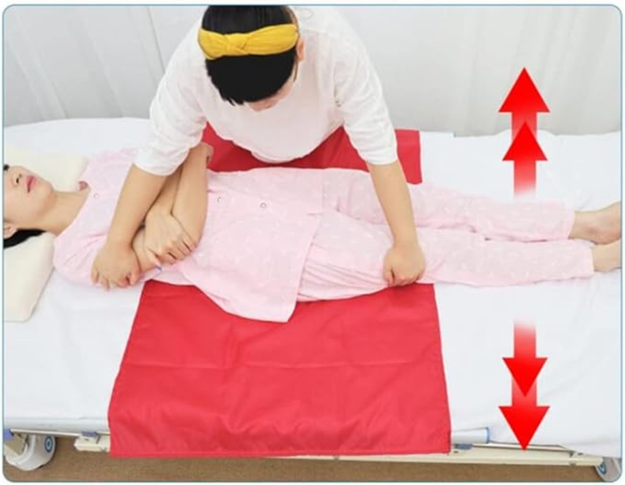 【パイプ状デザイン】折りたたまずに使えるスライドシート。摩擦力が少ないため、動きが不自由な方がベッドに移動したり体位を変えたり、車椅子や自動車に移るのを助けることができます。