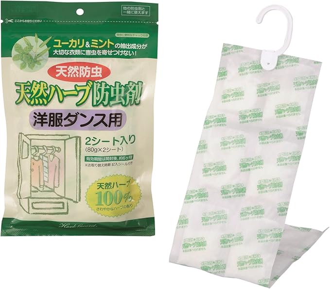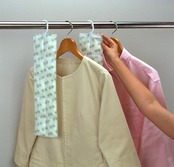 ●・シリカゲルの効果で湿気をとってカビも防止する。(約6ヶ月間の防虫効果が無くなったら、天日干しで水分を蒸発させて除湿剤として再利用できる。)
