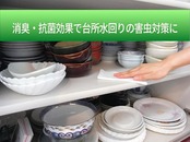 ●いつもの拭き掃除をするだけで、「消臭」「抗菌」効果を発揮し、さらに虫(台所害虫)よけ効果が得られる嬉しい機能を持っています