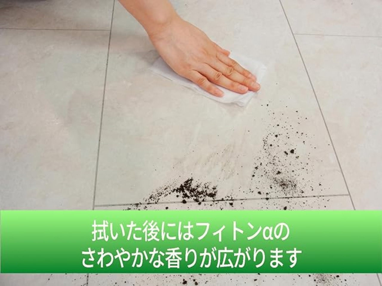 ●いつもの拭き掃除をするだけで、「消臭」「抗菌」効果を発揮し、さらに虫(台所害虫)よけ効果が得られる嬉しい機能を持っています ●洗浄成分には、昔ながらの汚れ落としとして有名な米ぬかエキスを配合。床拭きや畳拭き、キッチン周りの油汚れや、テーブル、棚の上など広範囲にわたり使用することができます ●200 300mmの大判厚手シートなので市販のフローリングワイパーに装着することができます ●台所害虫に対しての忌避効果があるので、台所害虫の棲みやすいキッチン周りや水周り、玄関などの通り道の拭き掃除にお使いください ●拭いた後には、30数種類の精油をブレンドしたフィトンαのさわやかな香りが広がります