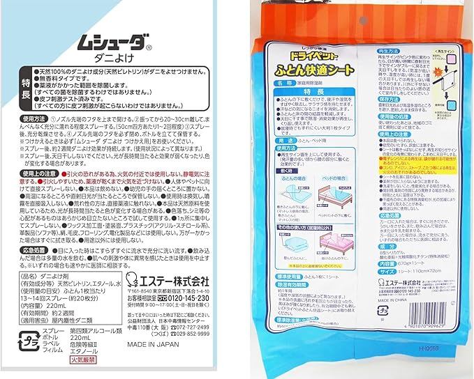 【ふとんケア セット買い】ダニよけスプレー(無香料)と、「寝汗や湿気に」ふとん快適シートのセットです。