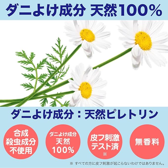 【ダニよけスプレー】ダニよけ成分 天然ピレトリンがダニをよせつけません。